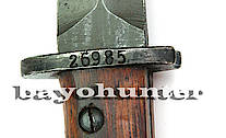 Рукоять: образована двумя деревянными щечками, скреплёнными с хвостовиком двумя винтами. В стальной головке рукояти Т-образный паз и пружинная защёлка с внутренним расположением спиральной пружины. Крестовина короткая прямая, с углублением для ствола.